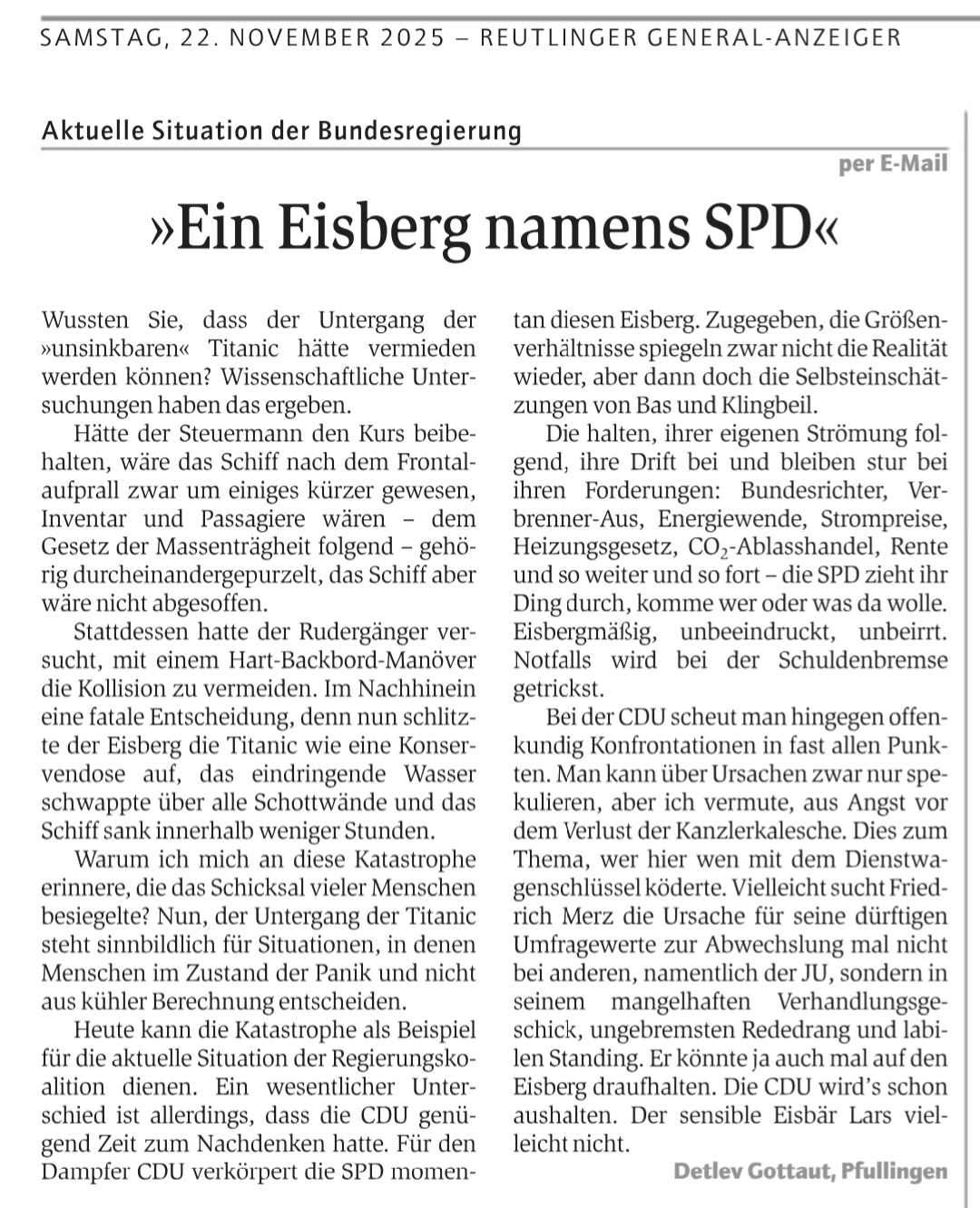- Offener Brief an Michael Donth, MdB CDU November 15, 2025